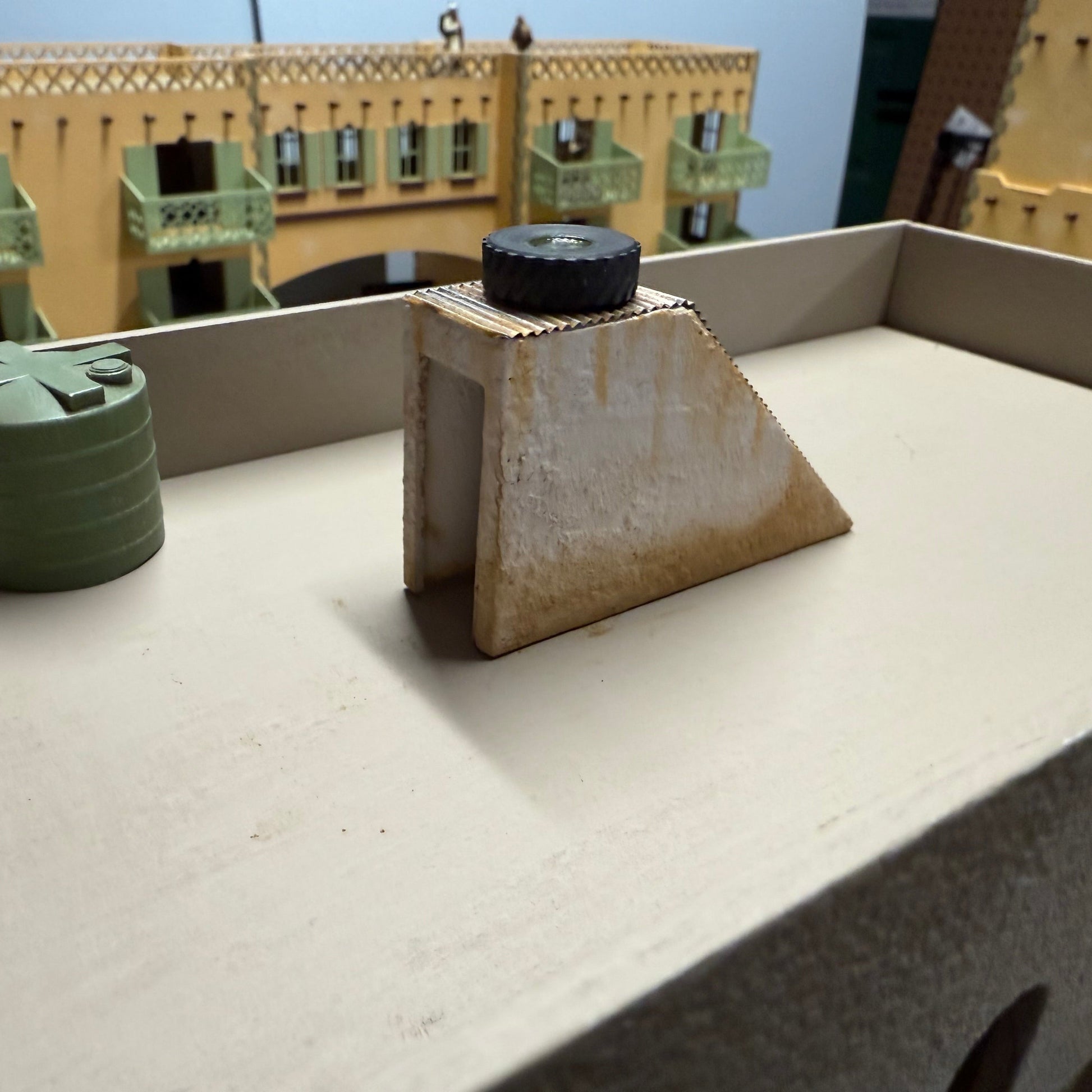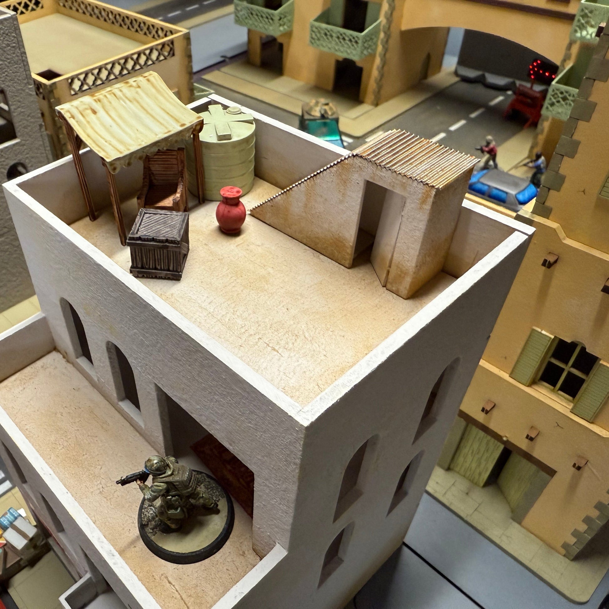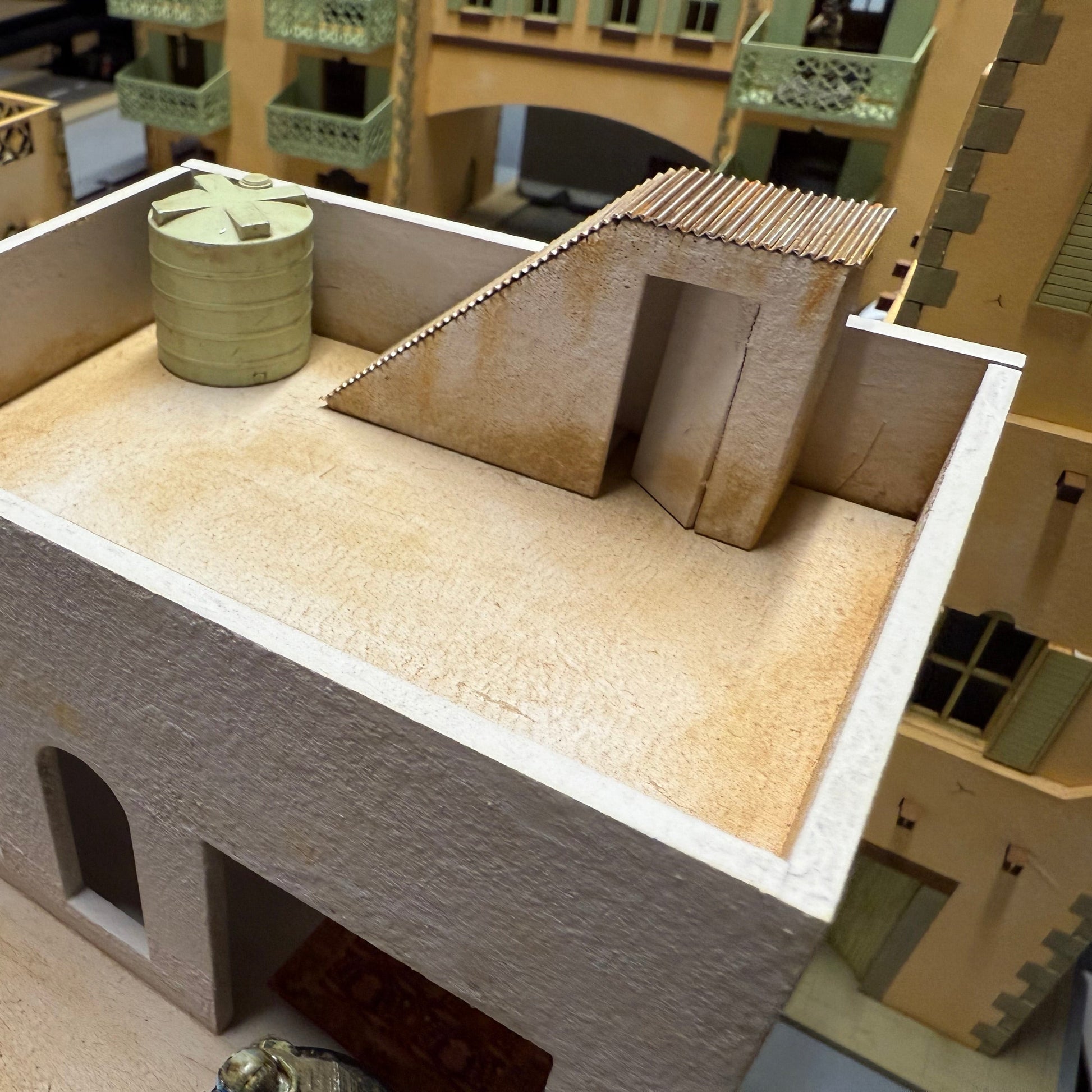 Corrugated tin roof is user added and not included. Tip: Painted sandpaper works great to simulate gravel roofs.