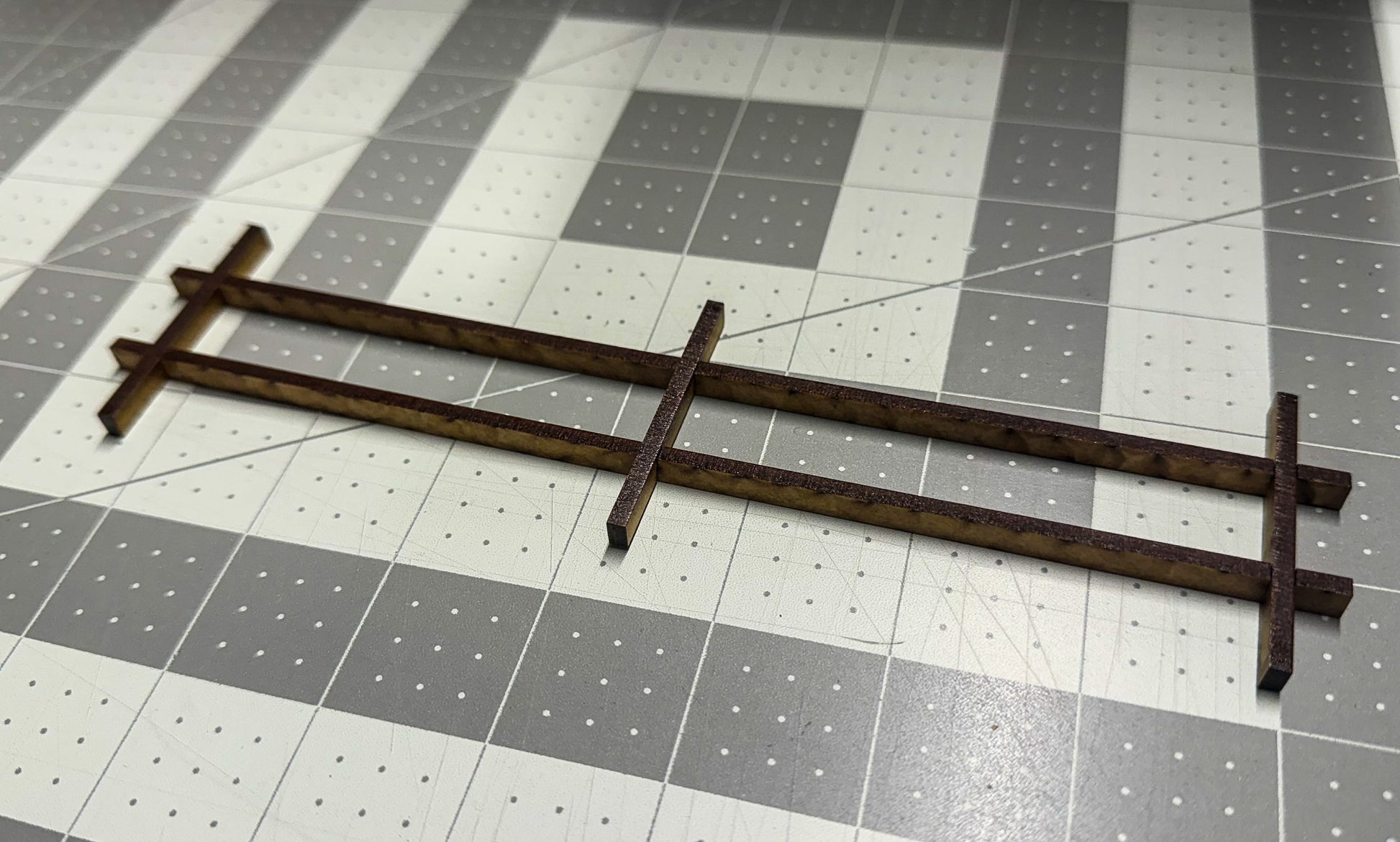 Kit comes with a MDF jig that goes under the model to keep the model level and at the correct height while gluing the wheels on.
