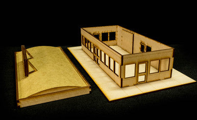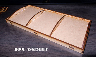 Model features a removable roof so you can detail the inside to your liking and play inside as well. The curved roof is made from a very durable material, the same material that our painting stencils are made from.
